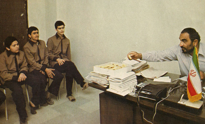 در حال نشان دادن همین عکس در مجله «جامعه» به زندانیان است.