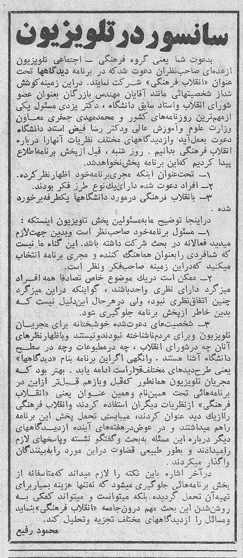 هفت: اعتراض محمود رفیع به سانسور در تلویزیون و پخش نکردن گفتگو با مهدی